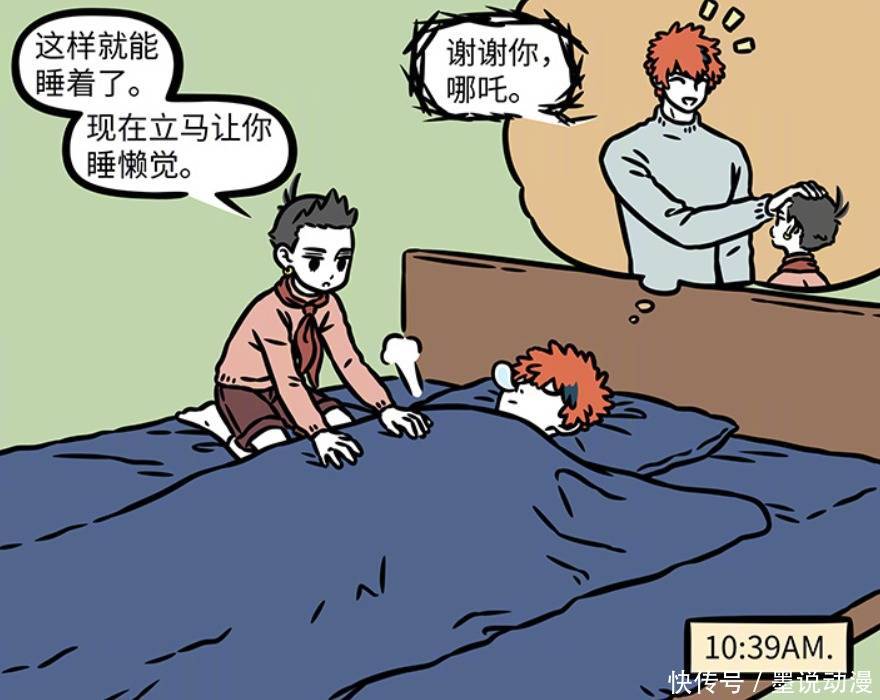 昴日星君在哪吒这一拳下,那是圆梦。哪吒这物理催眠的方式,效果就是一百分。哪吒还将昴日星君扛到了床上,还给他盖好了被子。昴日星君这一觉那是直接睡到第二天十点三十九。昴日星君应该感谢哪吒,这辈子第一次睡懒觉,虽说有点疼,但起码做到了。